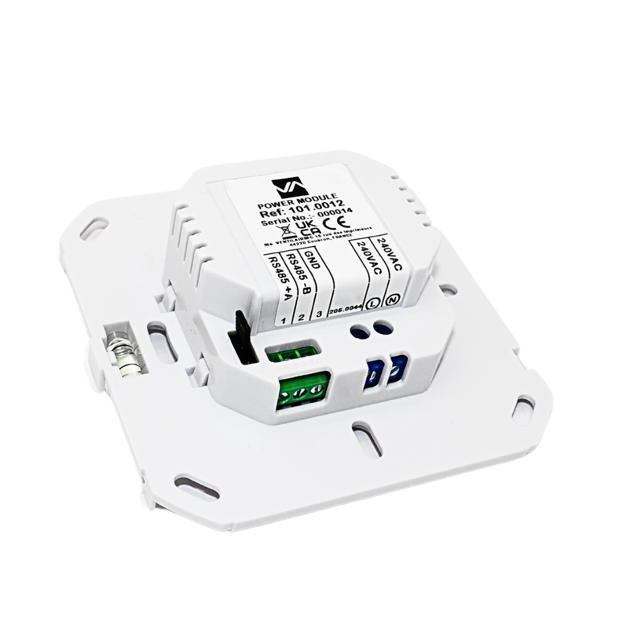 Cette alimentation encastrée permet de raccorder les capteurs et télécommandes VMI à une alimentation secteur 5V, pour une installation discrète et sans fil apparent.